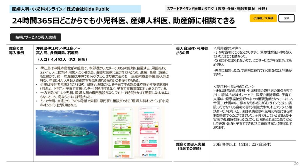 2026.01.21 24時間365日どこからでも小児科医、産婦人科医、助産師に相談できる 資料をダウンロード 前の記事PREV 次の記事NEXT 過去のスマートアイランド推進実証調査の事例 スマートアイランド推進カタログ