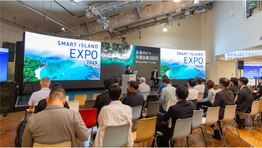 去る、令和7年10月9日(木)にスマートアイランドの推進に向けた官民のマッチングを推進するためのイベント「スマートアイランドEXPO2025」(同時開催:未来のシマ共創会議(認定NPO法人離島経済新聞社主催))が開催され、離島自治体や事業者の方を中心に約300名の皆様にご参加いただき、盛会に終了いたしました。皆様、熱心に意見交換をされている様子が印象的でした。