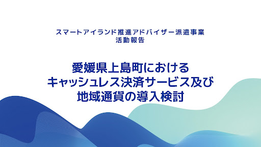 愛媛県上島町では、このアドバイザー派遣を令和6~7年度の2年間導入して、「離島地域におけるキャッシュレス決済サービス及び地域通貨の導入」の可能性について検討を行ってきました。